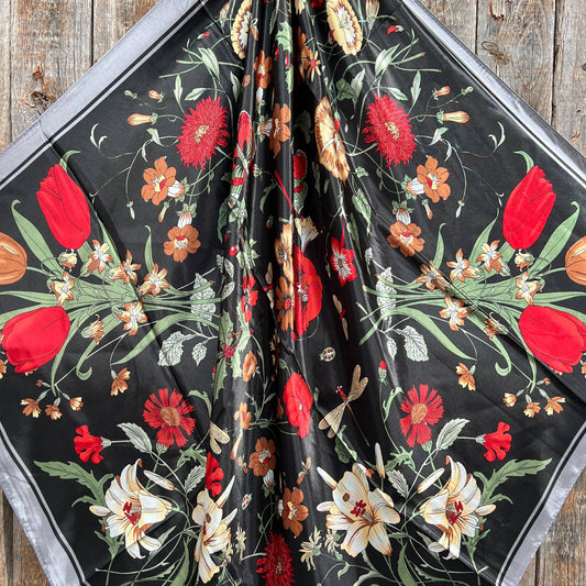 35X35" Black and Silver Tulips and Lilies Wild Rag / Scarf WR1011